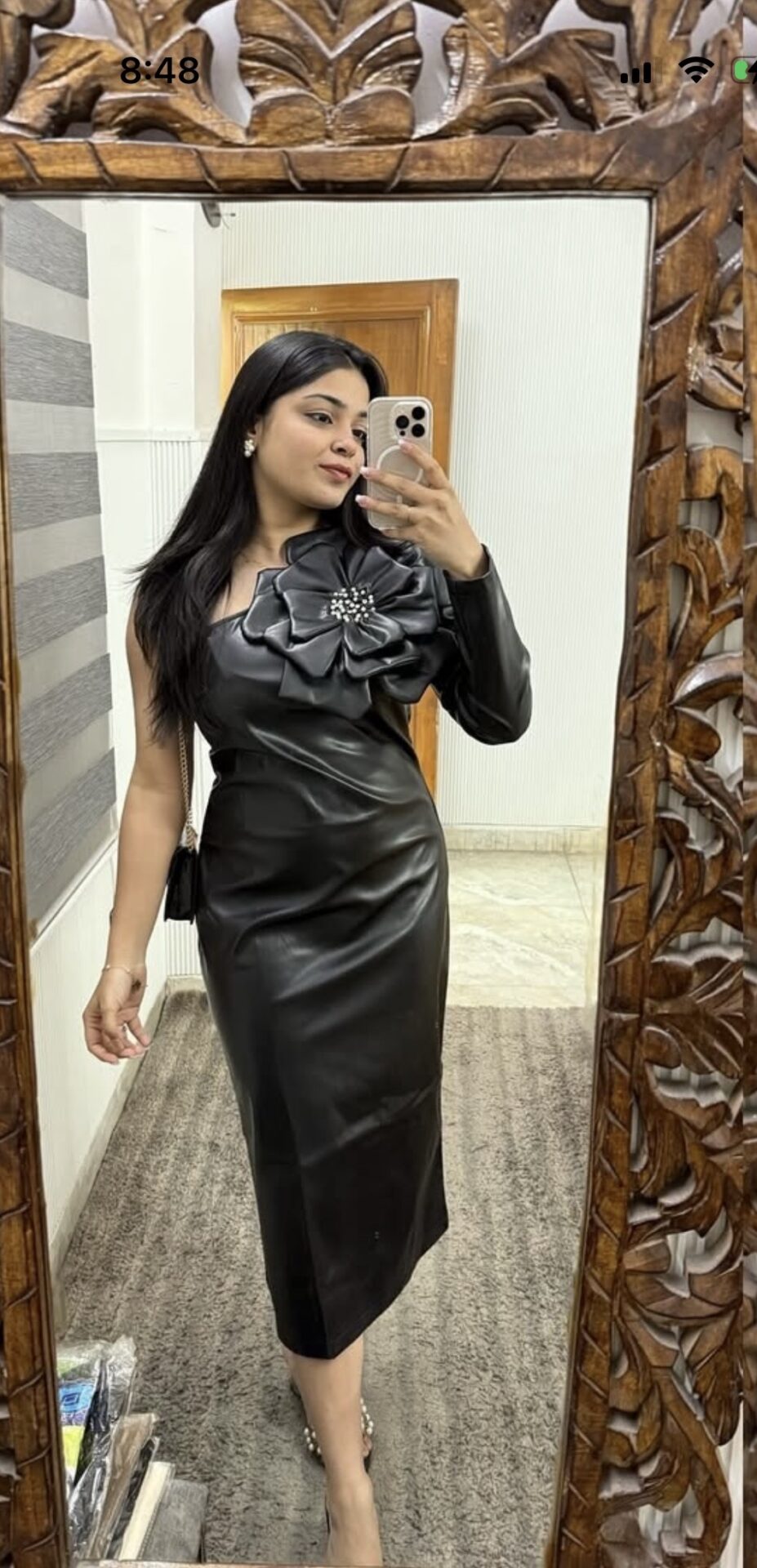 Flower leather dress