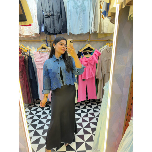 Lace crop denim shirt
