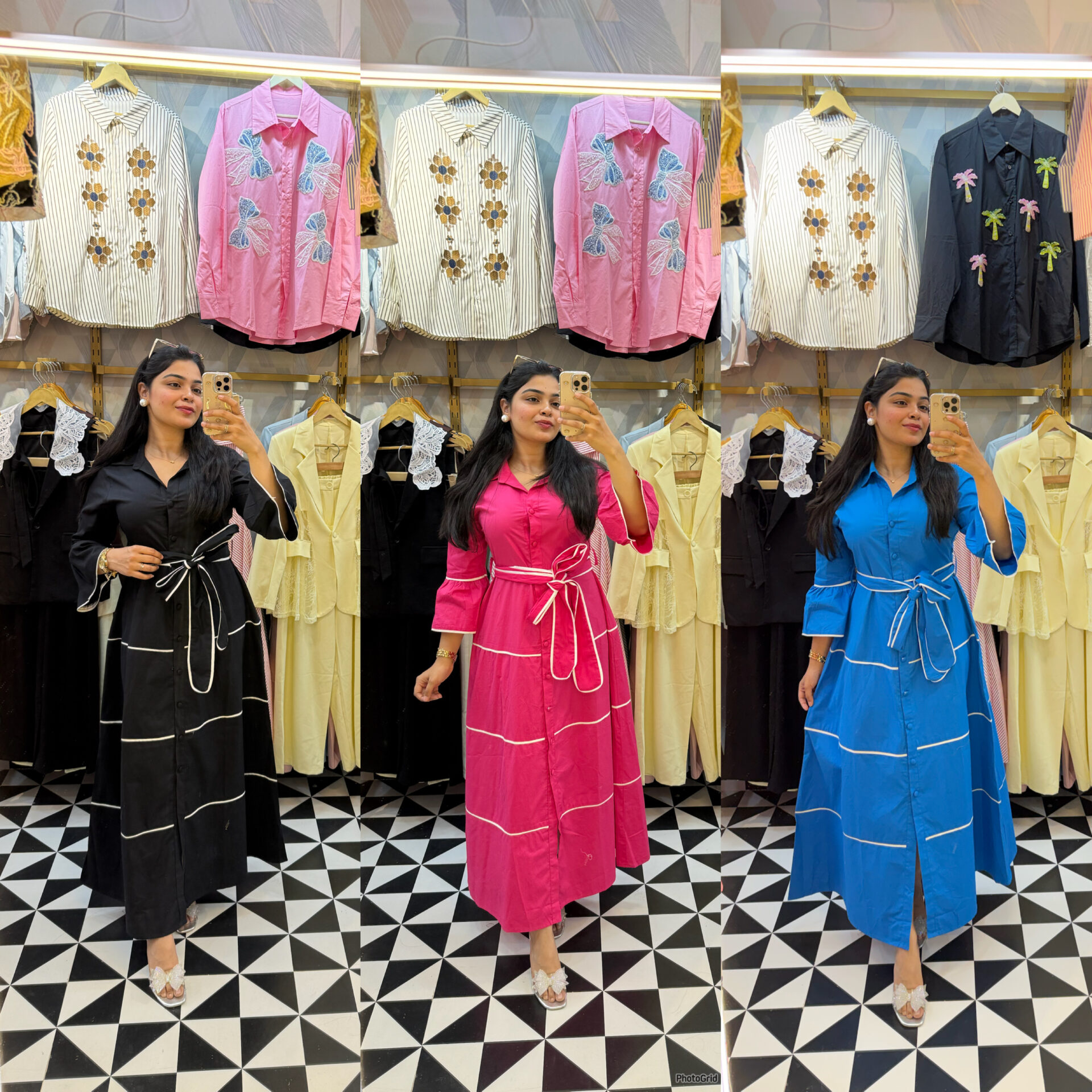 Black, Blue, Hot pink