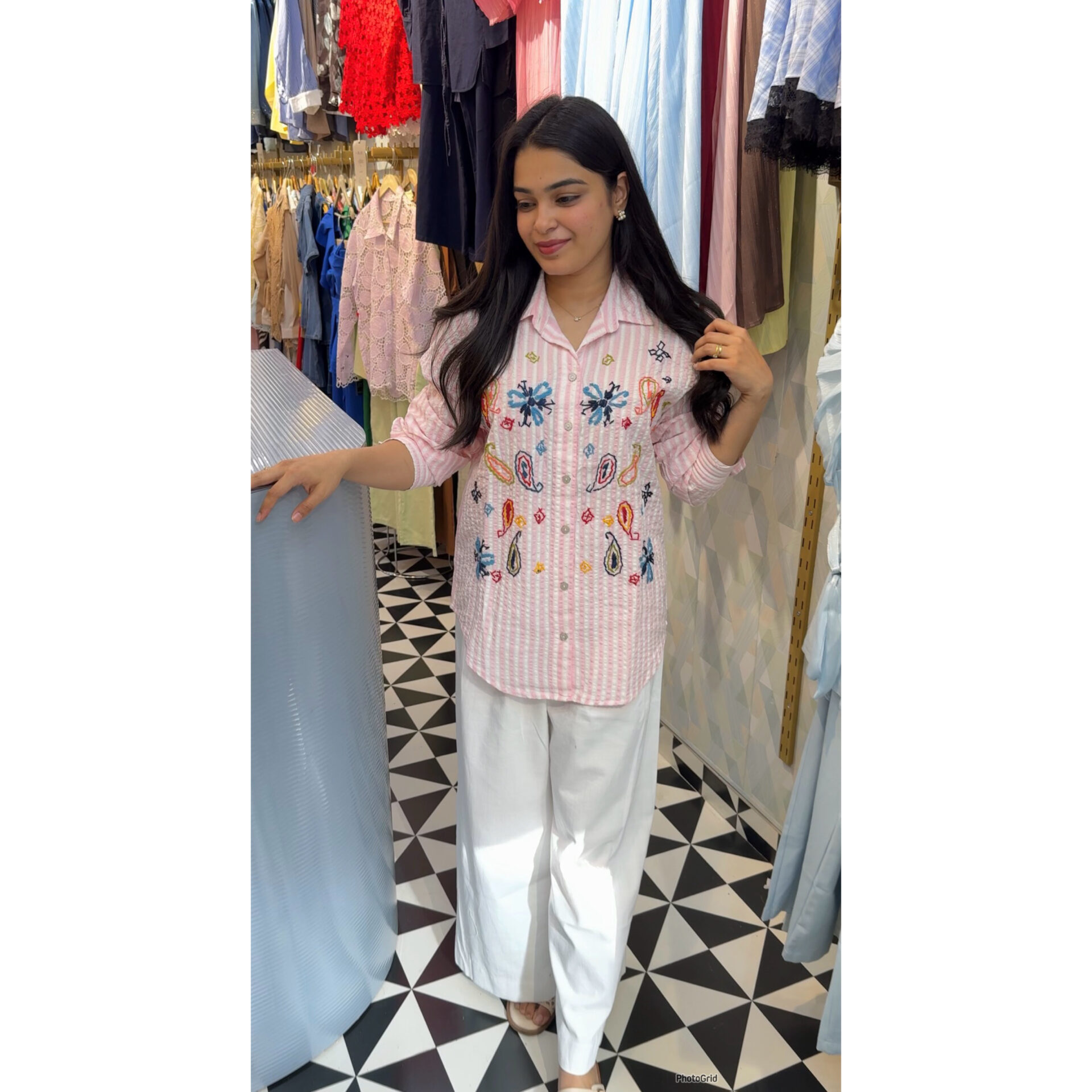 Striped embroidered shirt